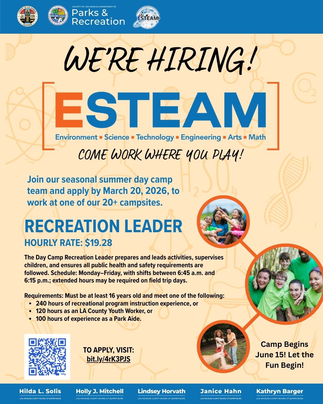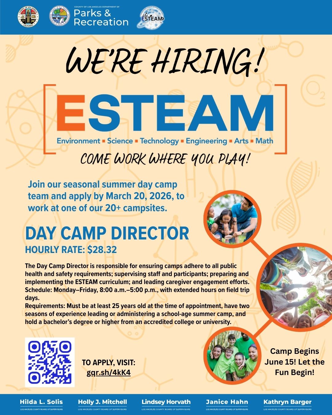 Grounded in equity, accessibility, and community, ESTEAM is offered across multiple LA County parks, providing youth with an enriching, safe, and empowering summer experience that sparks a lifelong love of learning.